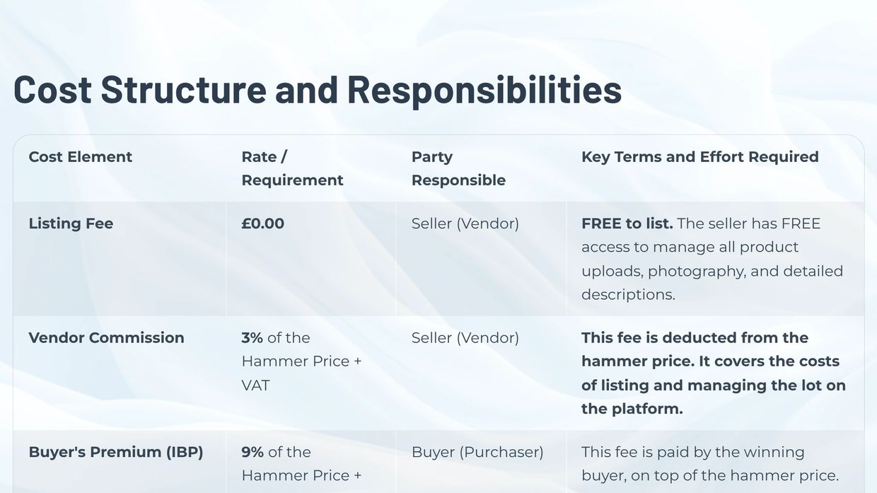 These terms apply to all Vetecom Self-Service Auction Channels, including our Quarterly General Sales, Periodic Specialist Auctions, and the new Live Real-time App launching in January 2026. This is our exclusive, low-cost model, designed for experienced practice managers and sellers who wish to fully manage their sale. This includes responsibility for creating their own asset listings, writing detailed product descriptions, generating supporting marketing materials, and handling all Pre and post-sale follow-up enquiries via email communication.